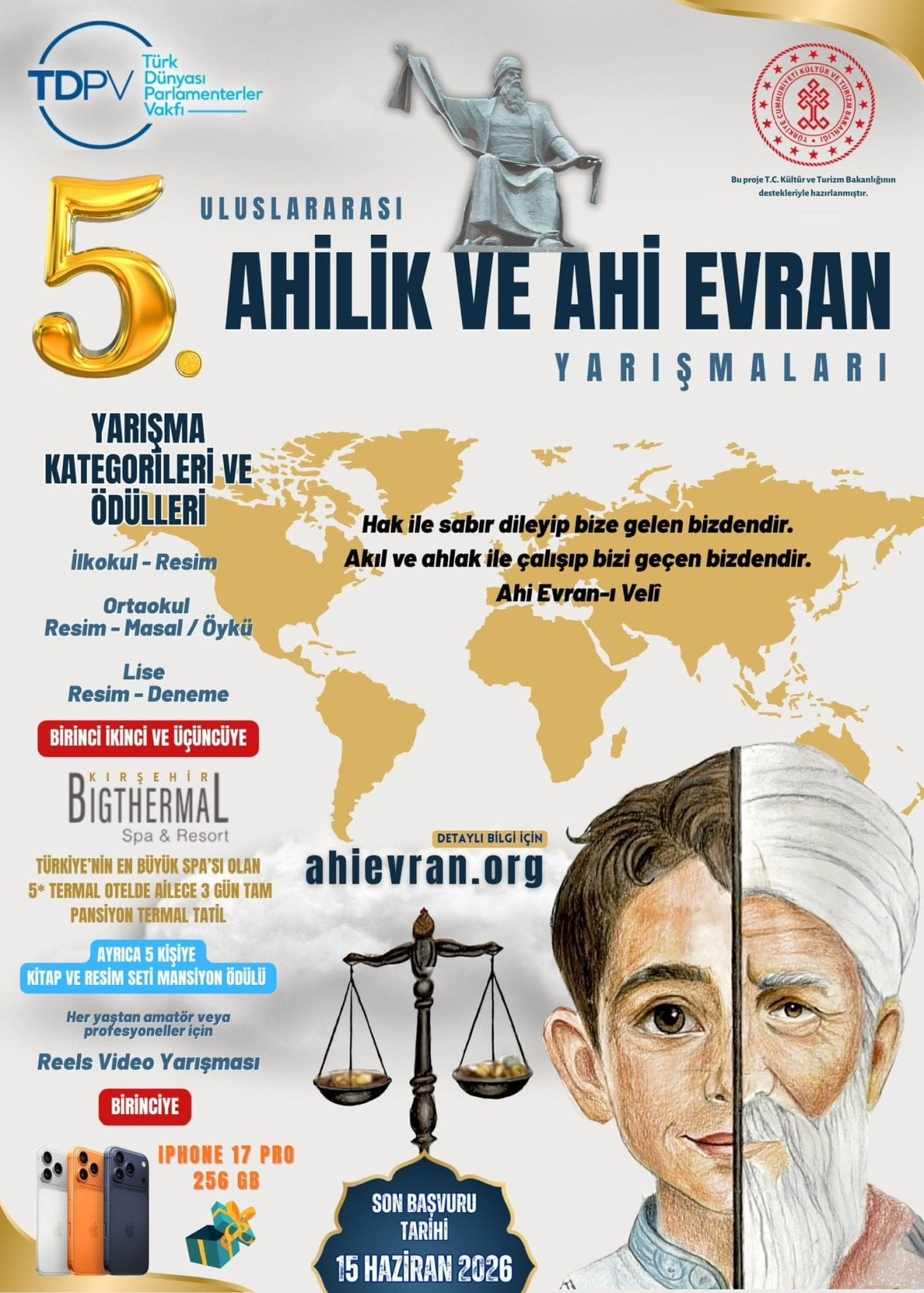 Kültür ve Turizm Bakanlığının desteğiyle Türk Dünyası Parlamenterler Vakfı tarafından düzenlenen “5. Uluslararası Ahilik ve Ahi Evran Yarışmaları” başvuruları başladı.