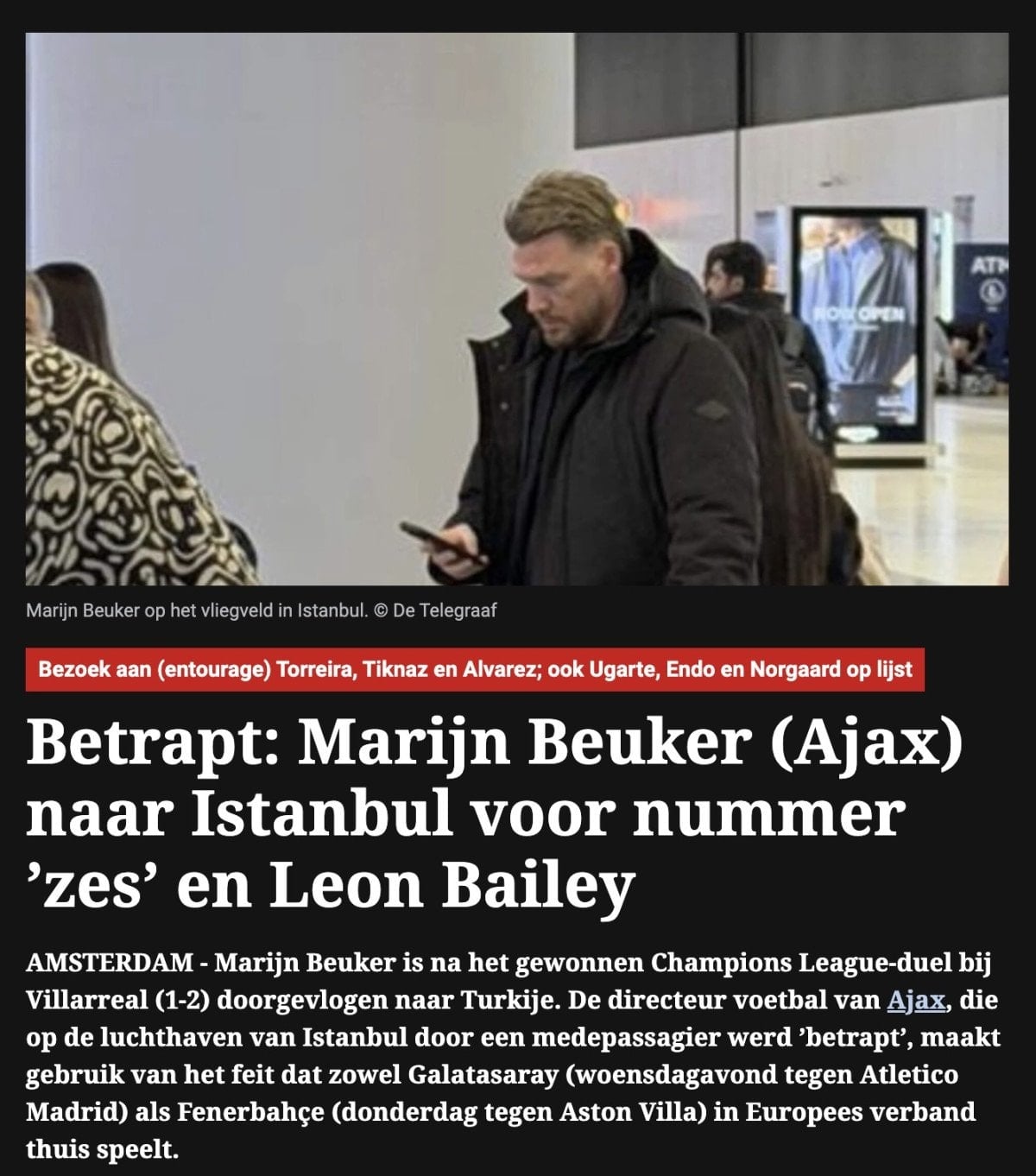 Ajax, Villarreal ile oynanan Şampiyonlar Ligi maçının ardından İstanbul’a temsilci gönderdi.