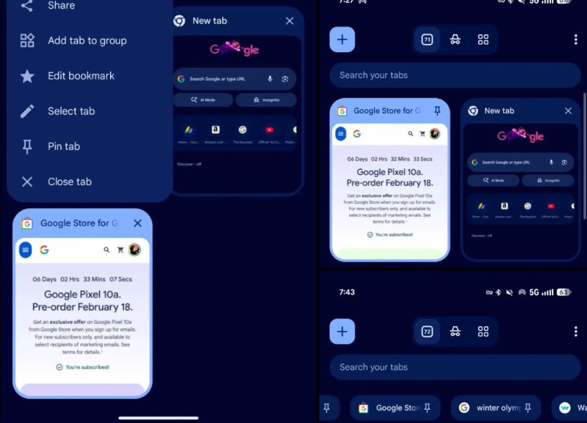 Google, masaüstü sürümünde sıkça kullanılan sabitlenmiş sekmeler özelliğini Chrome 144 güncellemesiyle birlikte Android platformuna getirdi.
