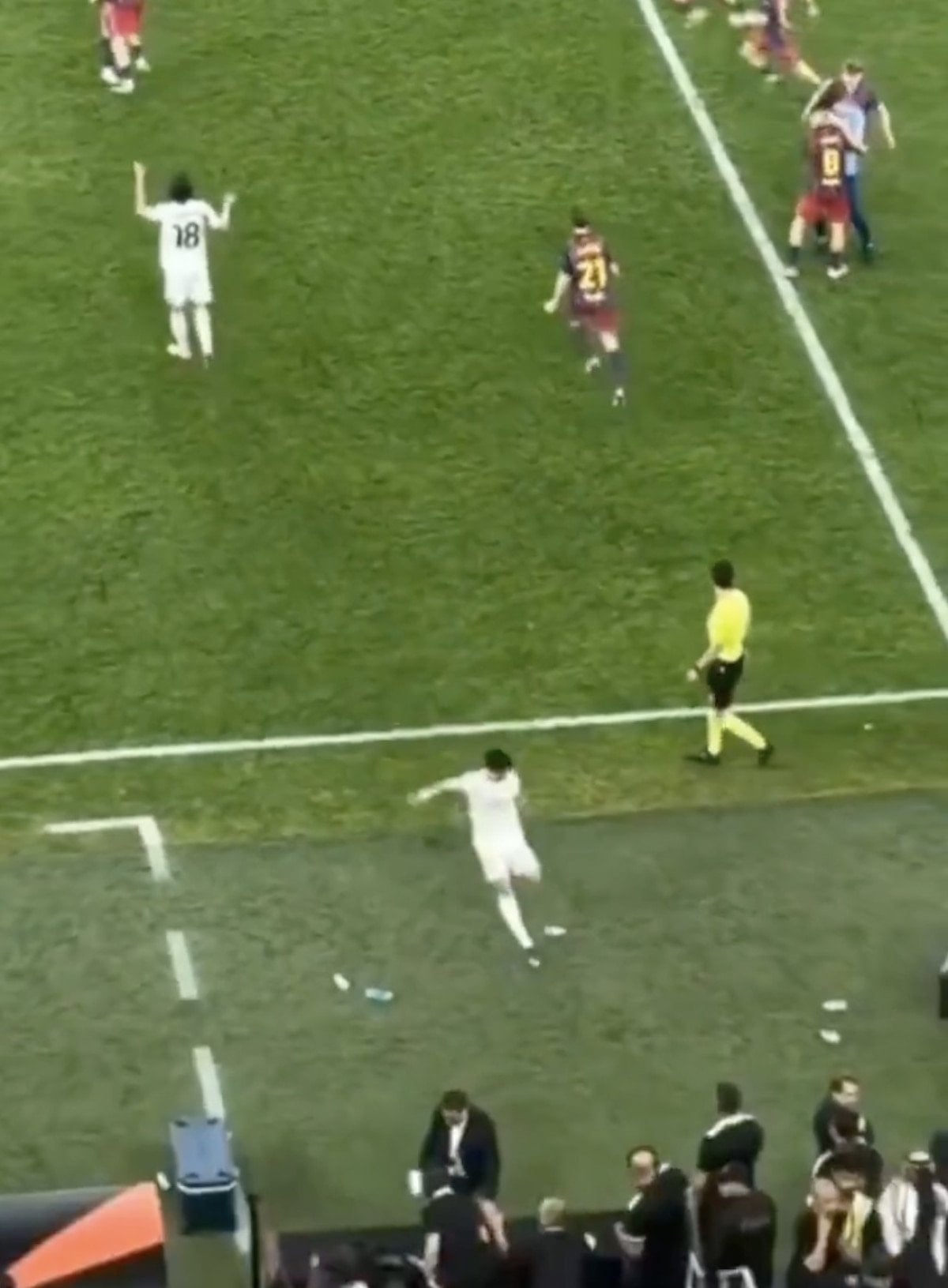 Barcelona, İspanya Süper Kupa finalinde Real Madrid’i 3-2 yenerek kupayı kazandı. Maç sonrası Arda Güler’in sinirle tekme atarken ayağının kayıp yere düştüğü anlar dikkat çekti.