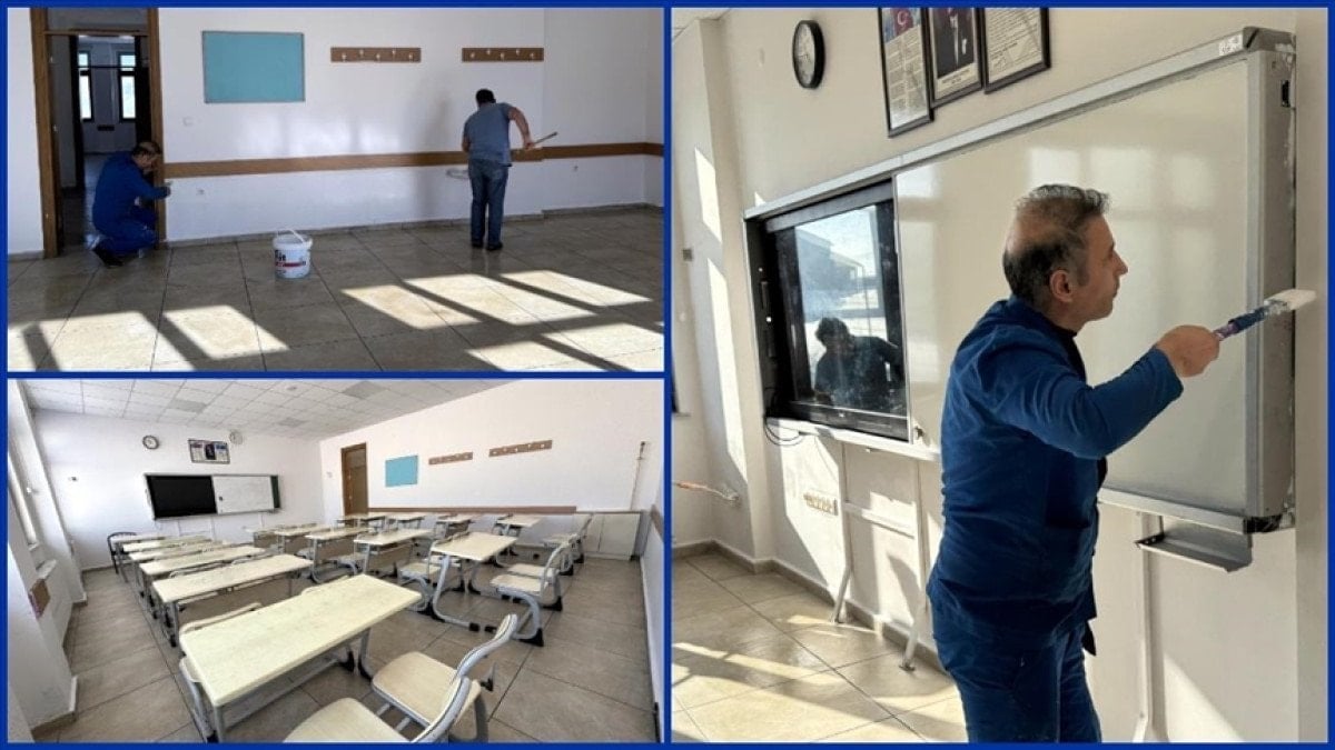 Badana, sıva ve boya işlemlerinin ardından genel temizlik çalışmalarının gerçekleştirildiği okulda, sıralar düzenlenerek sınıflar eğitim öğretime hazır hale getirildi. İdarecilerin bizzat çalışmalara katılması, okulda dayanışma örneği sergiledi.