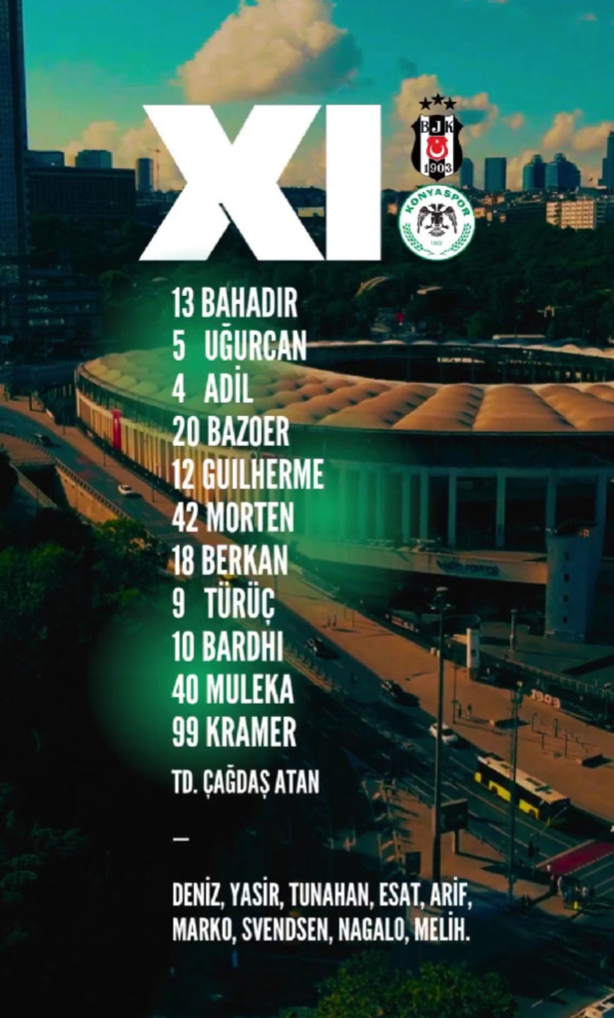 Beşiktaş – Konyaspor maçının ilk 11’leri