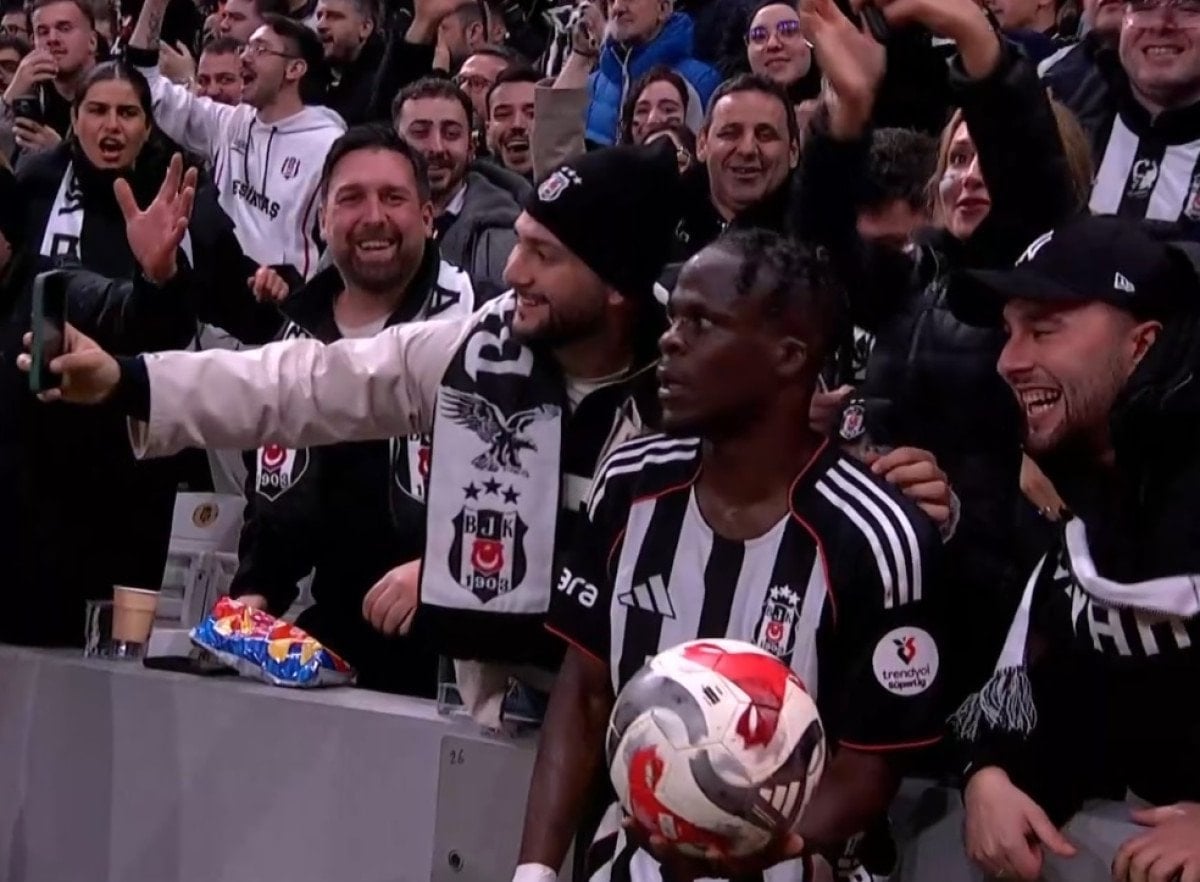 Beşiktaş’ın yeni transferi Junior Olaitan, 2-2 biten Alanyaspor maçı sırasında taç atışı öncesinde bir taraftarla selfie çektirdi. Olaitan’ın o anları izleyenleri gülümsetti…