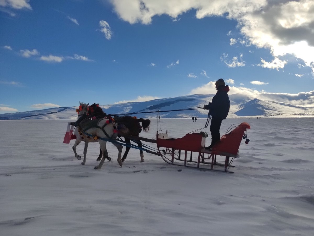 Buzlanmanın tamamlanmasıyla birlikte Çıldır Gölü’nün simgelerinden biri olan atlı kızak seferleri de başladı. Atlı kızakçı Ufuk Ada, bu yıl kış turizminin geç hareketlendiğini belirterek, yerli ve yabancı ziyaretçileri bölgeye davet etti.