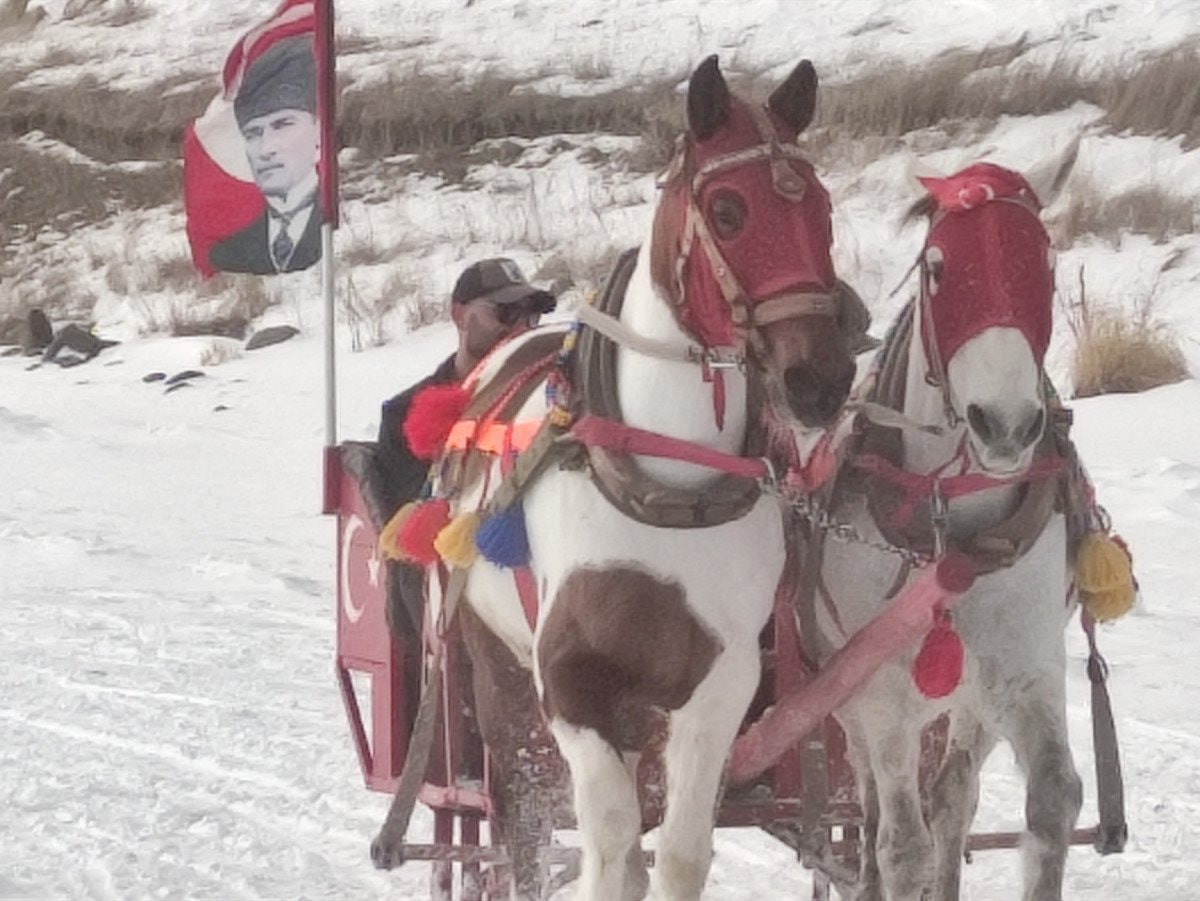 Çıldır Gölü buz tuttu, atlı kızak seferleri başladı