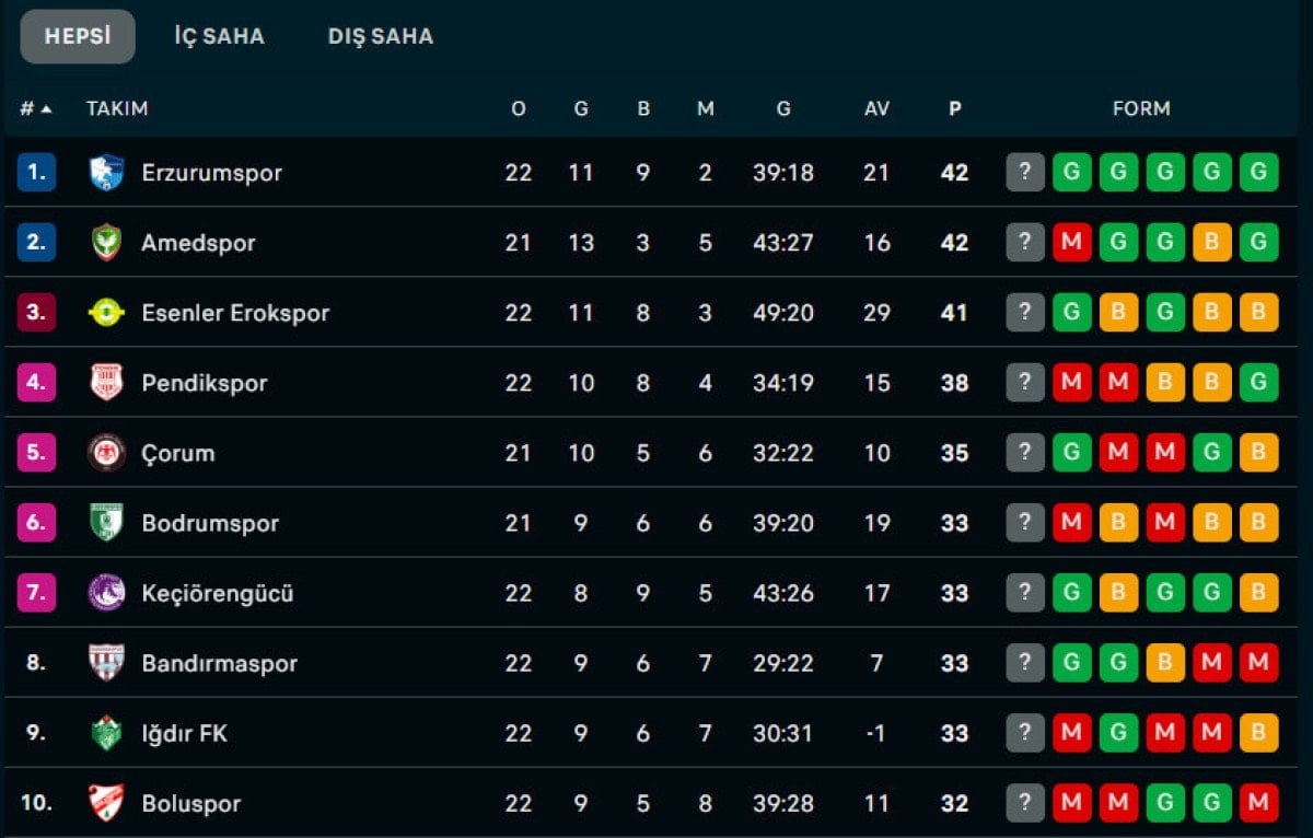 Bu galibiyetin ardından Erzurumspor FK puanını 42’ye yükseltti. Pendikspor 38 puanda kaldı.