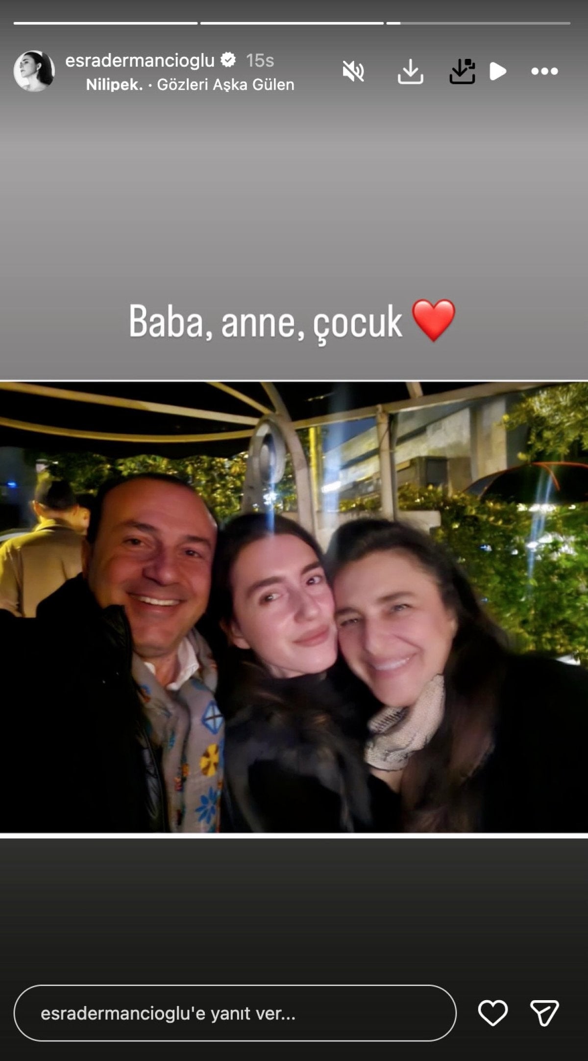 Sosyal medyada aktif olan Esra Dermancıoğlu, bu kez kızı Refia ve eski eşiyle birlikte olduğu fotoğrafı Instagram hesabından paylaştı