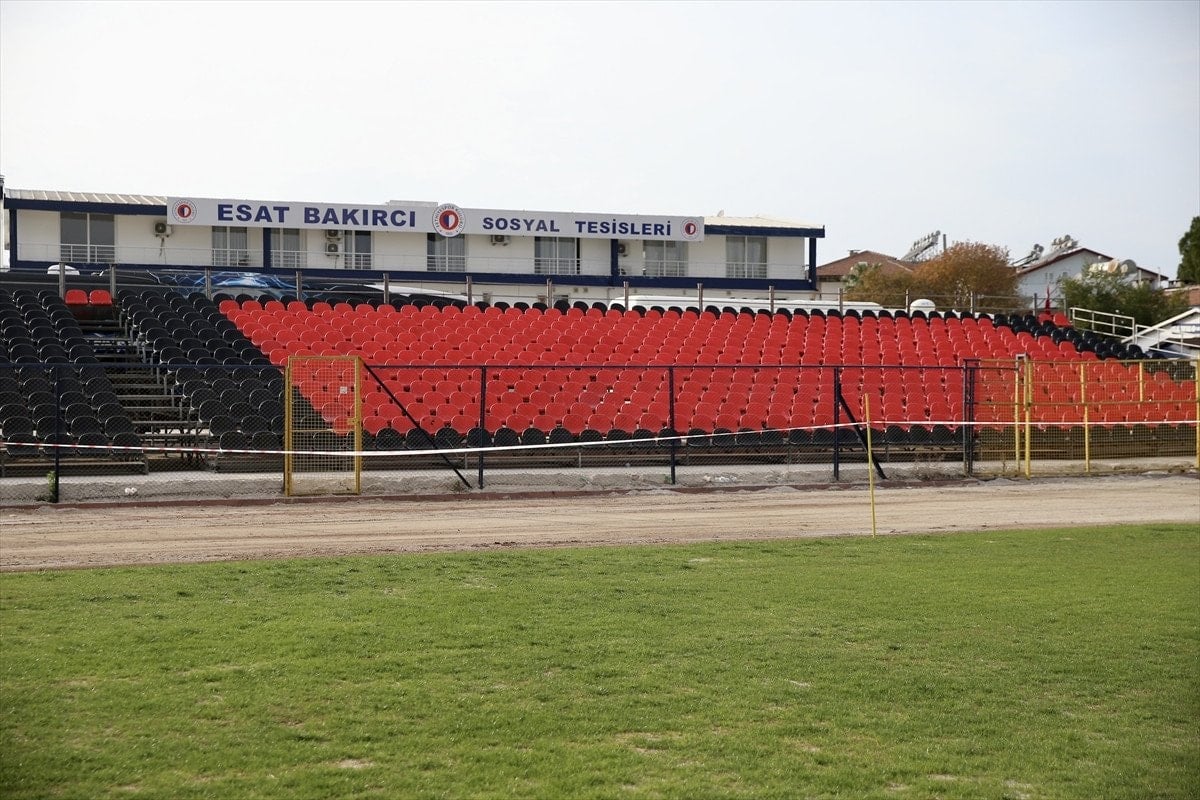 İlçe stadındaki deprem analiz raporunun olumsuz gelmesi nedeniyle yıkılan 3 bin kişilik tribünün yerine aynı kapasitede portatif tribün kuruldu.