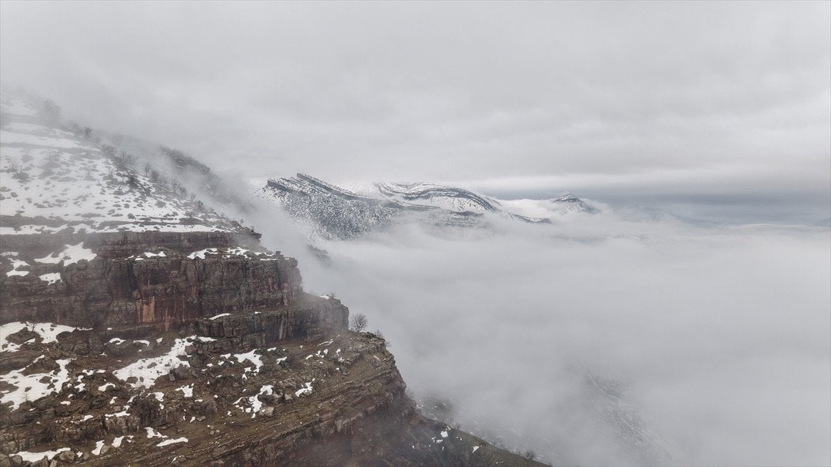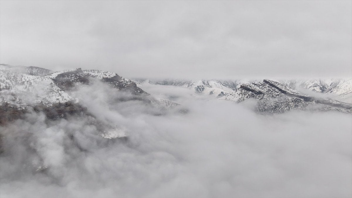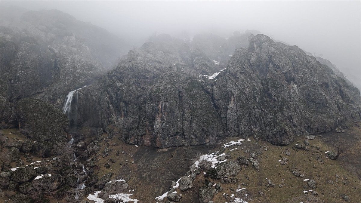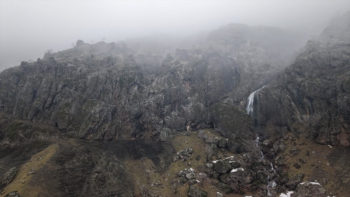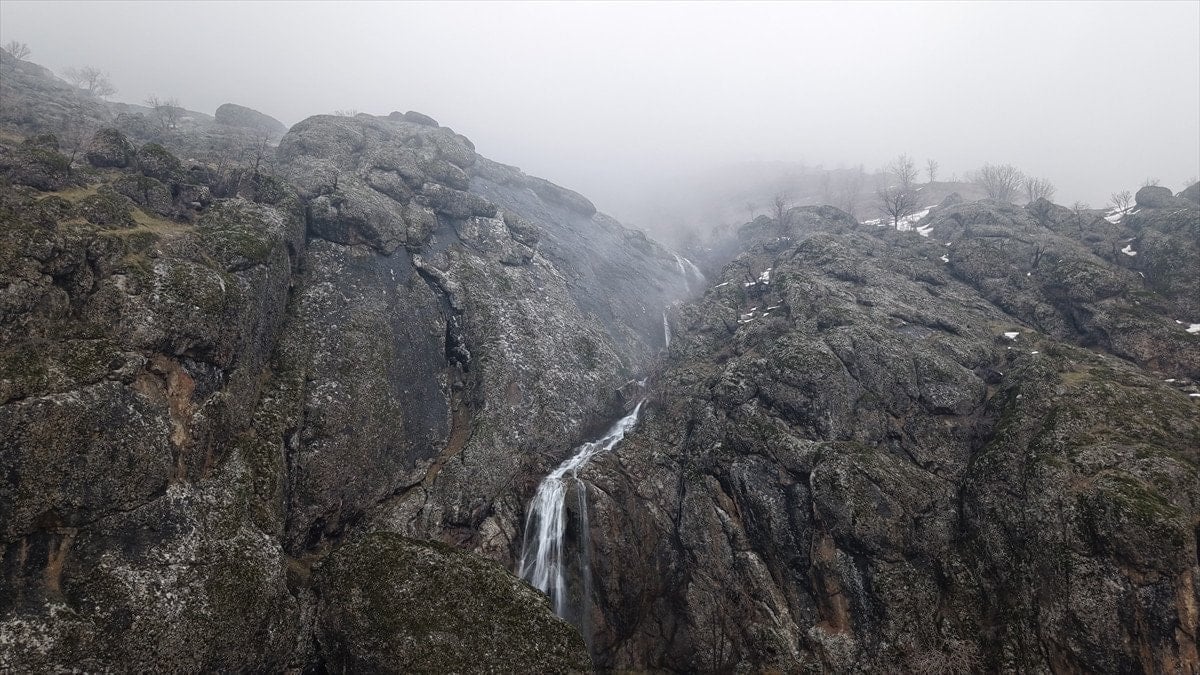 Derecik ilçesinde eriyen kar suları, Balkaya Dağları eteklerindeki şelaleleri yeniden akıttı. Sisle kaplanan yüksek kesimler ve şelaleler, drone’la görüntülendi.