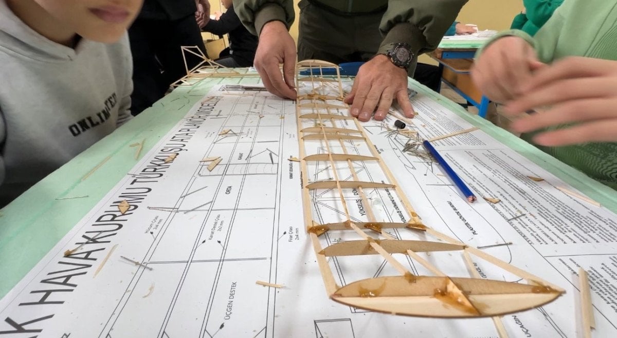 “Model Uçak Başlangıç Eğitimi” kapsamında Cumhuriyet İlk ve Ortaokulu ile İmam Hatip Ortaokulu’ndan seçilen 30 öğrenci ve 5 öğretmen eğitimlere katıldı. THK Uçuş ve Model Uçak Eğitmeni Hasan Tur rehberliğinde gerçekleştirilen çalışmalarda, öğrenciler model uçak yapımının yanı sıra uçuş prensipleri ve havacılığın temel kuralları hakkında bilgi edindi.