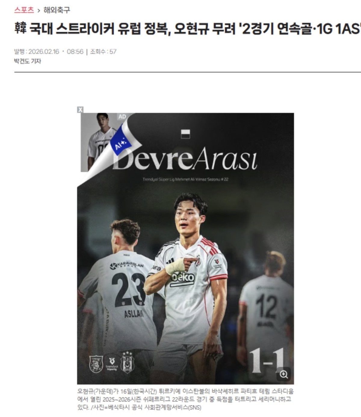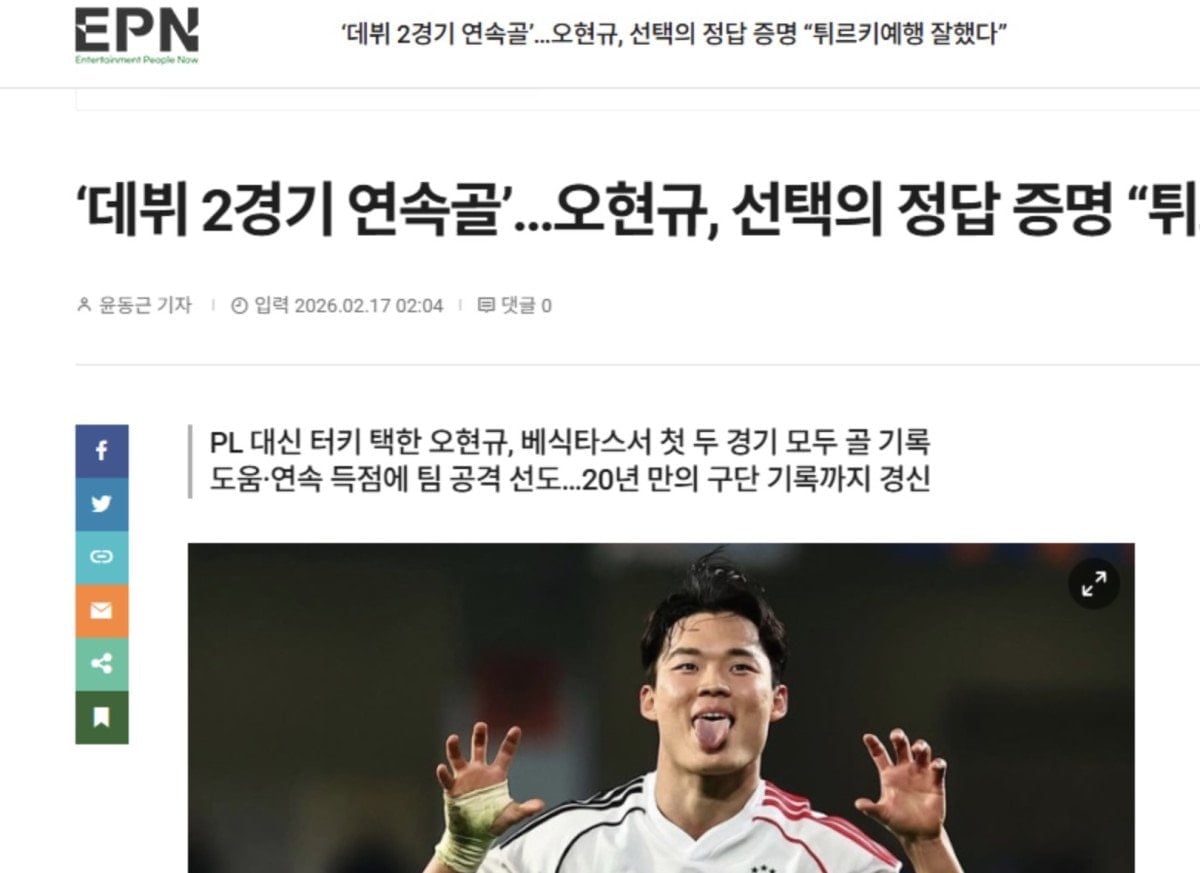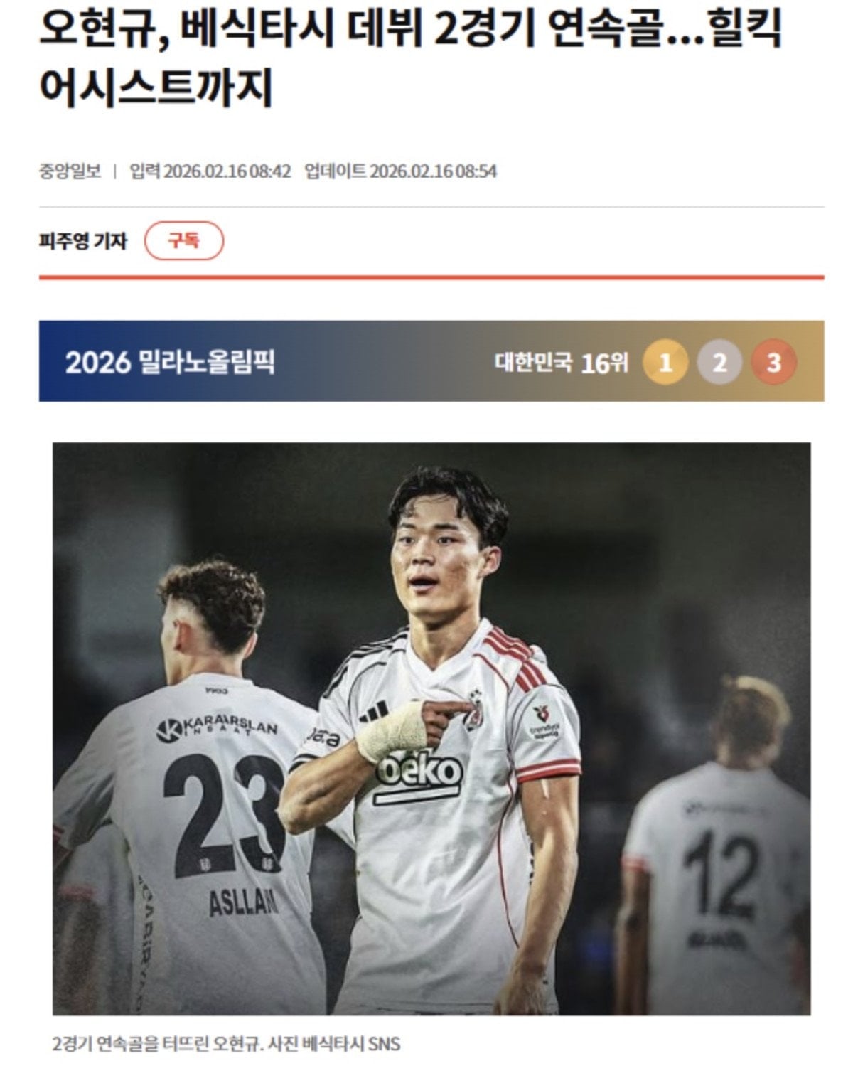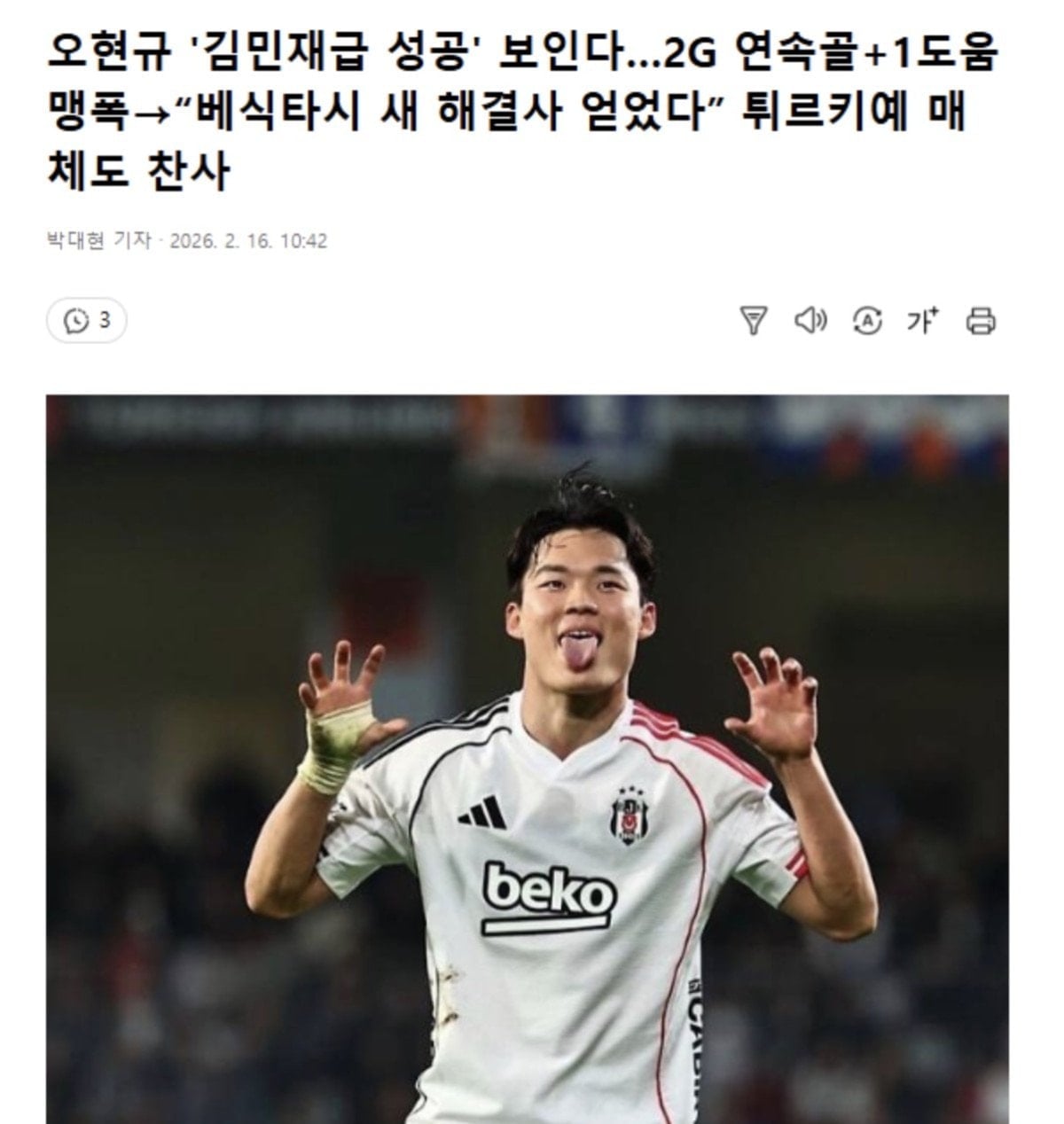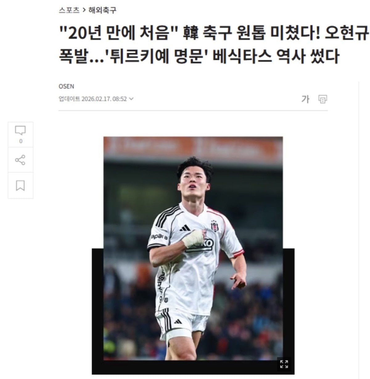 Güney Koreli santrfor Hyeon-gyu Oh, 11 günde çıktığı iki maçta 2 gol, 1 asistle oynadı ve Beşiktaş kariyerine beklentilerin de üstünde bir başlangıç yaptı. Oh’un performansı, ülkesi Güney Kore’nin basınında da gündem oldu.