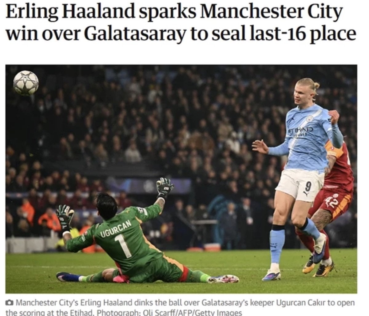 Aldığı galibiyetle ilk 8’e giren Manchester City’nin Galatasaray maçını, İngiltere basını manşetlerine taşıdı.