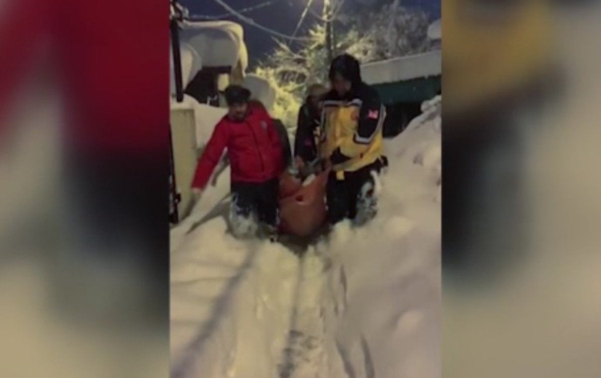 Kar kalınlığının yaklaşık 80 santimetreye ulaştığı mahalleye sevk edilen sağlık ekipleri, güçlükle hastanın bulunduğu adrese erişebildi.