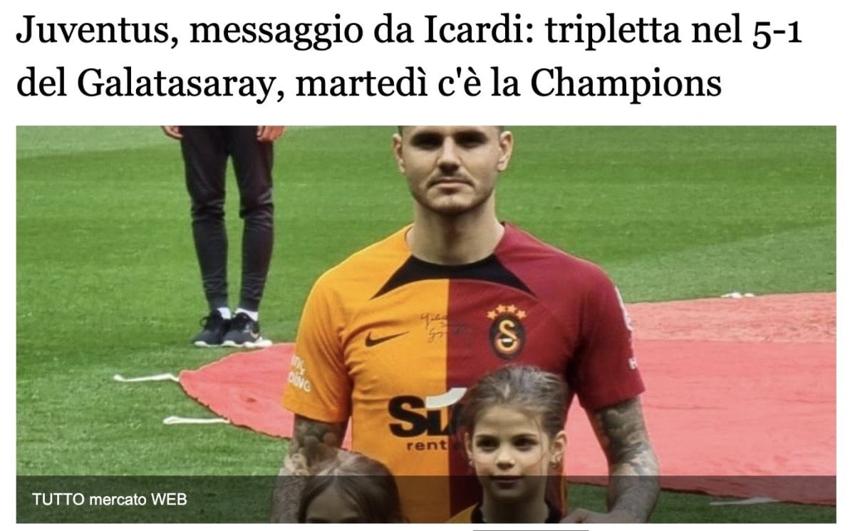 Galatasaray’ın Eyüpspor’u 5-1 yendiği ve Mauro Icardi’nin hat-trick yaptığı maç İtalyan basınında geniş yer buldu. Şampiyonlar Ligi’nde salı günü Juventus’un rakibi olacak sarı kırmızılıların performansı için övgü dolu yorumlar yapıldı.
