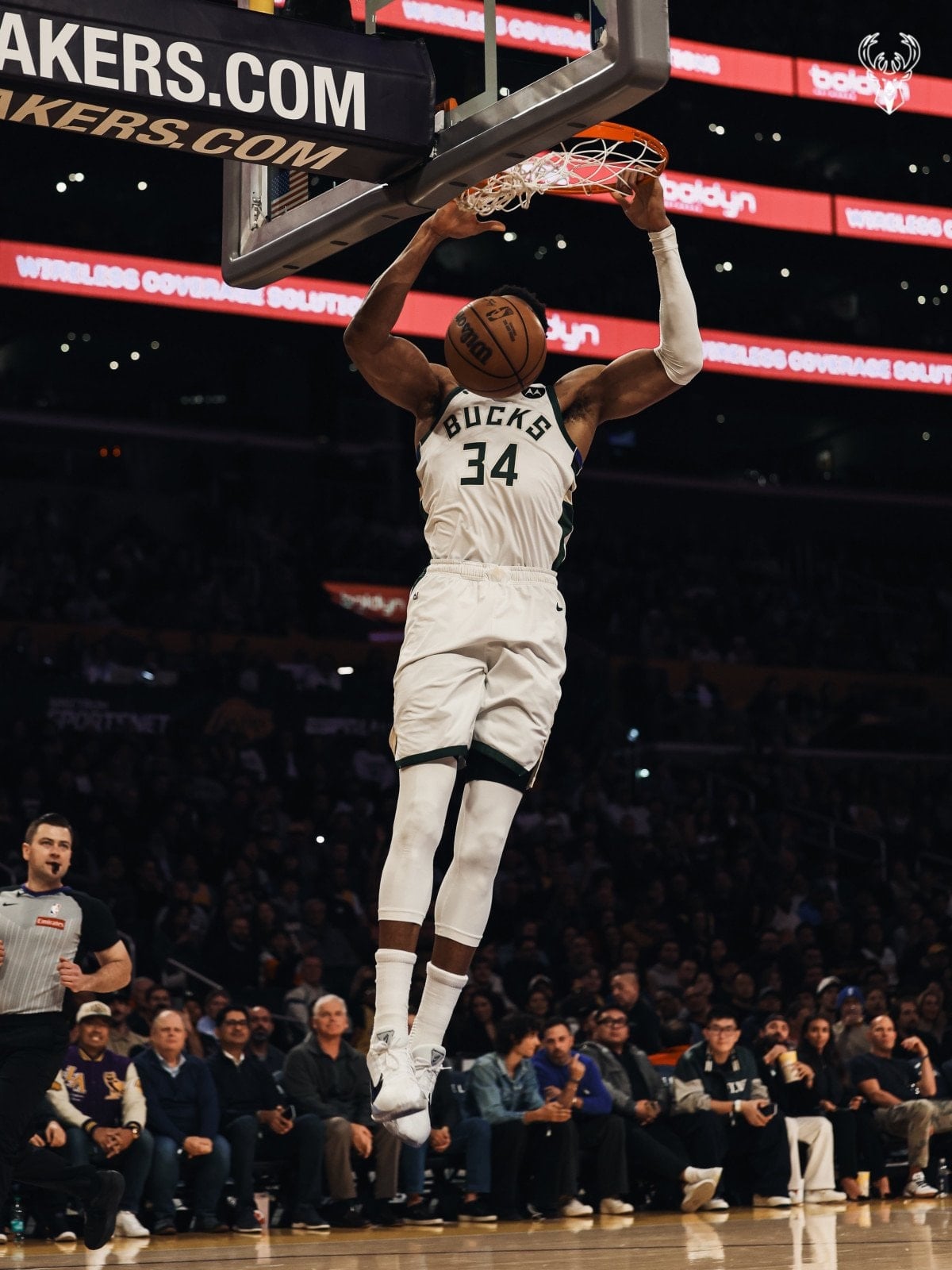 Sağ baldırındaki sakatlık sonrasındaki en düşük skorlu maçında 21 sayı ile oynayan Giannis Antetokounmpo, karşılaşma 101-101 beraberlikle devam ederken bitime 39 saniye kala LeBron James’in şutunu bloklarken, son saniyelerde top çalarak Lakers’ın berberliği yakalamasını önledi.