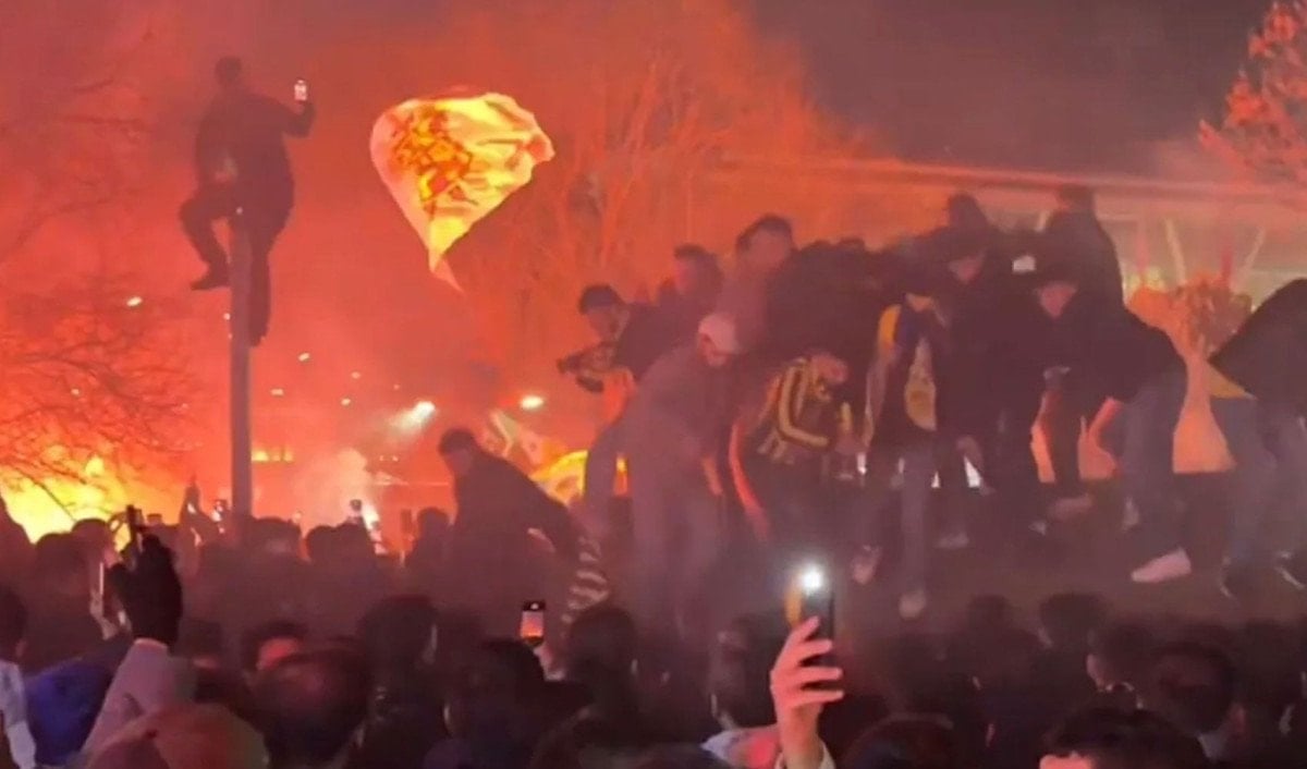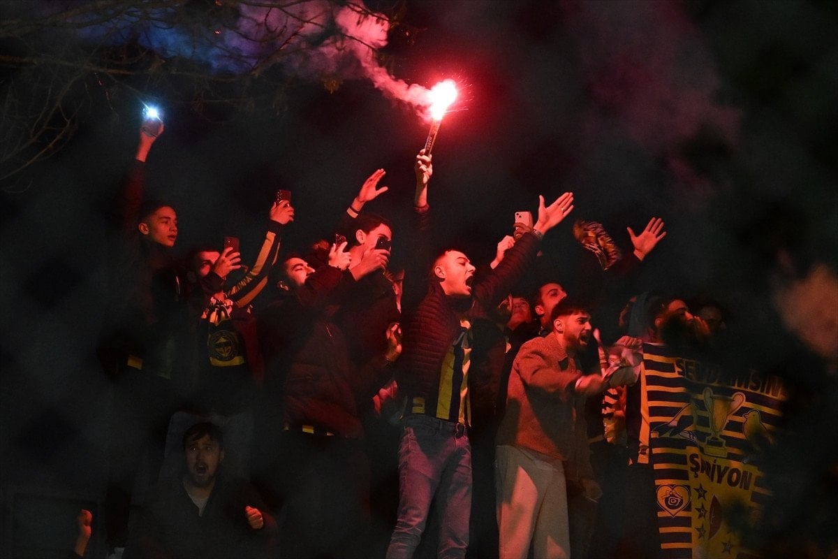 Kante’yi daha iyi görebilmek ve görüntü çekmek isteyen bir grup taraftar alandaki çardağın üzerine çıktı.