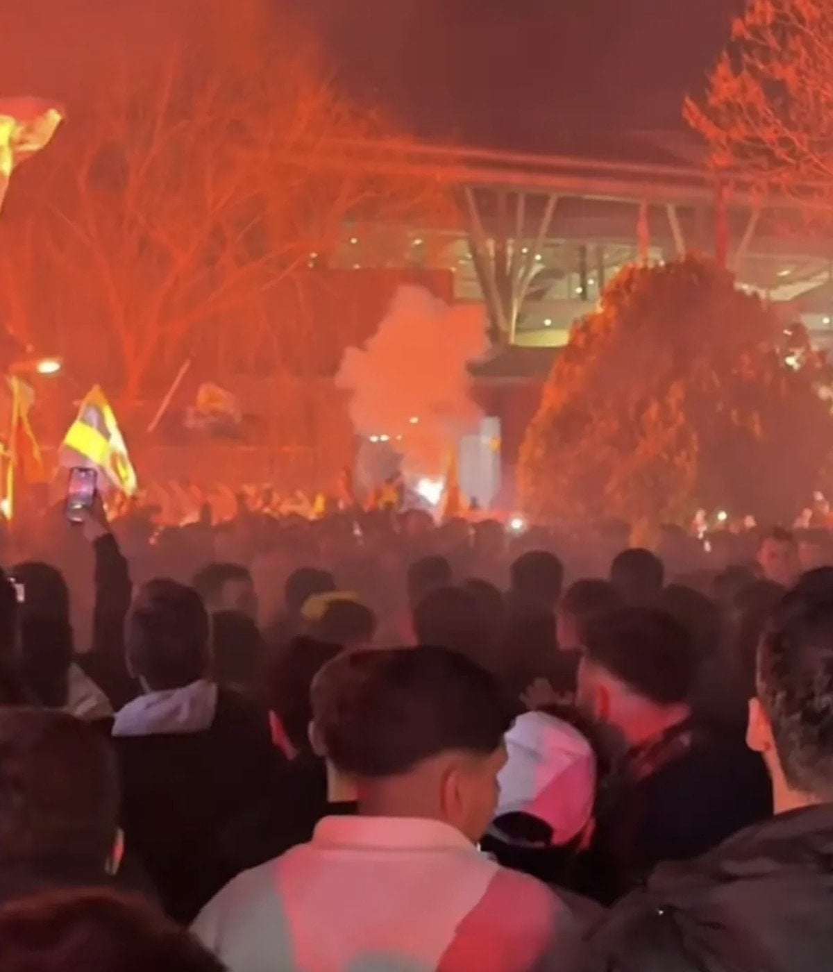 Hem çardağın üzerindeki hem de çevredeki taraftarlar kısa süreli bir panik yaşadı.