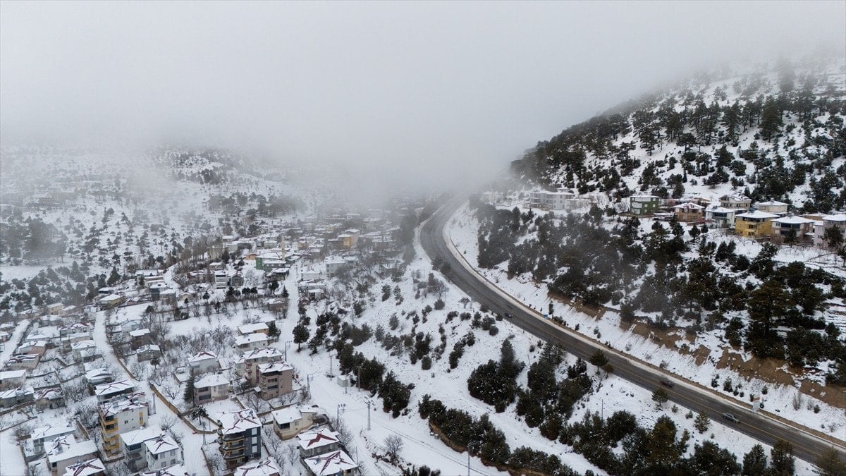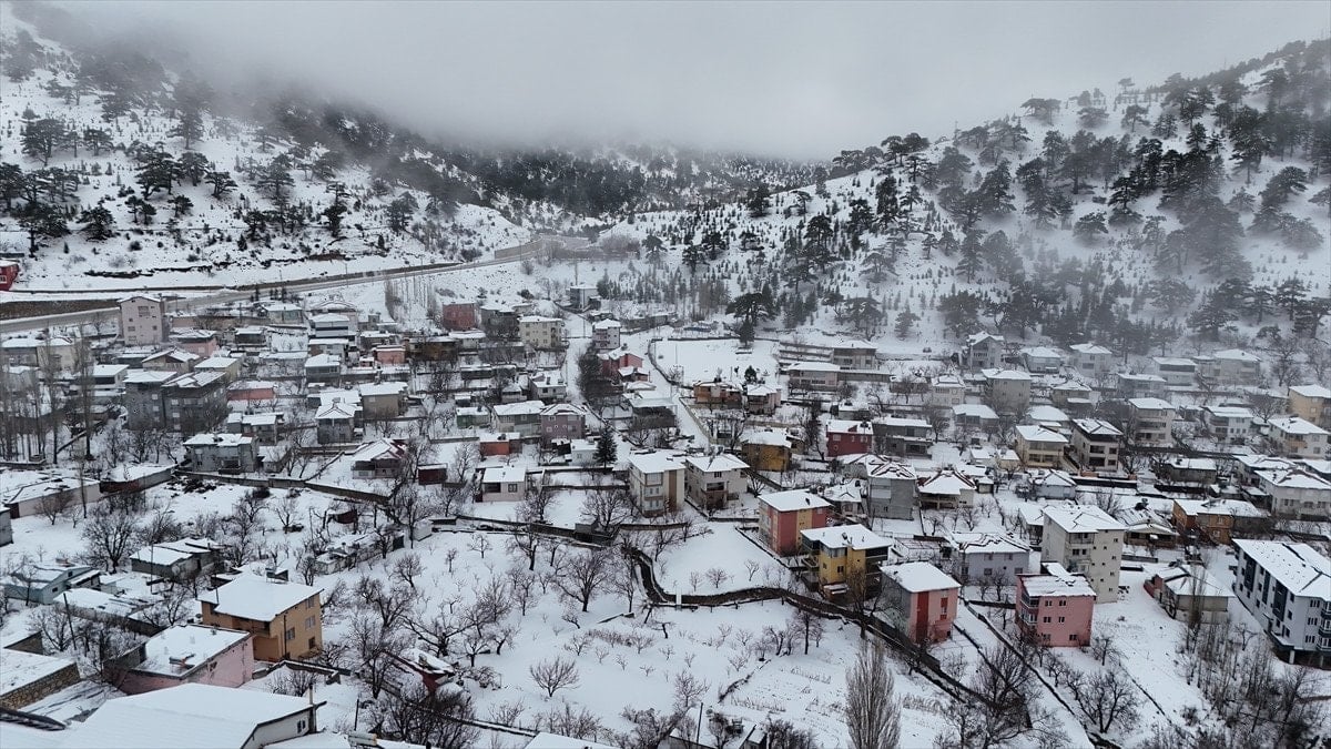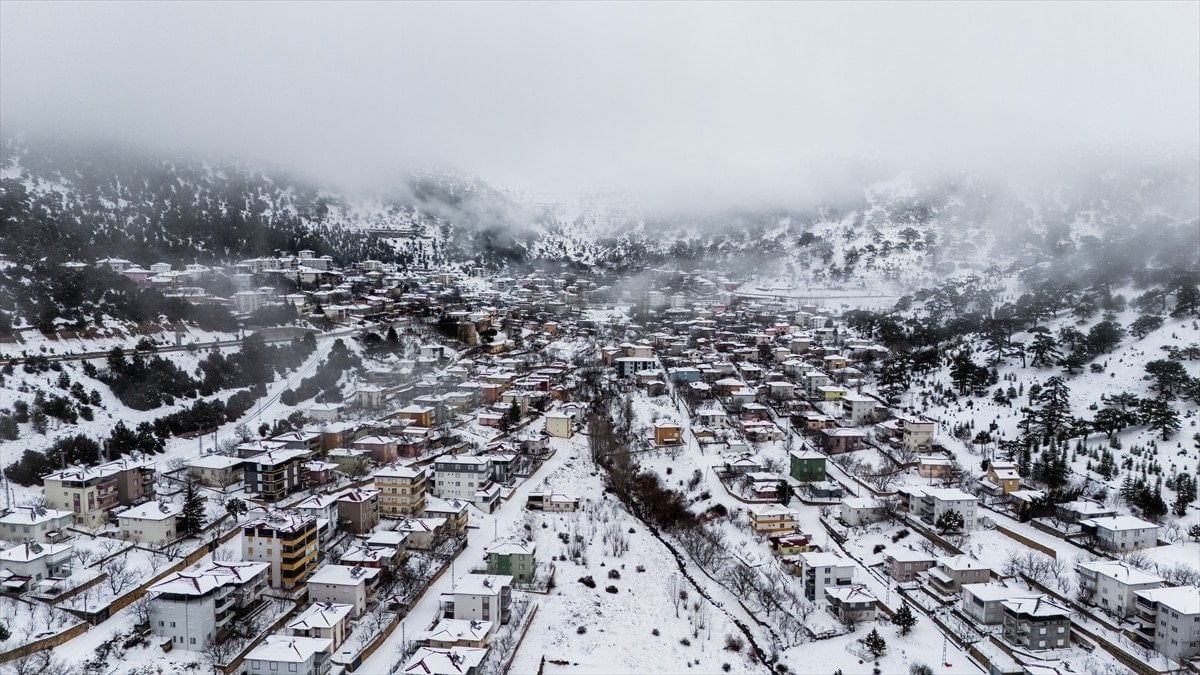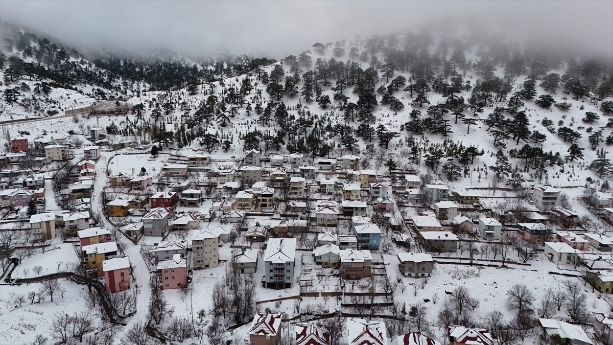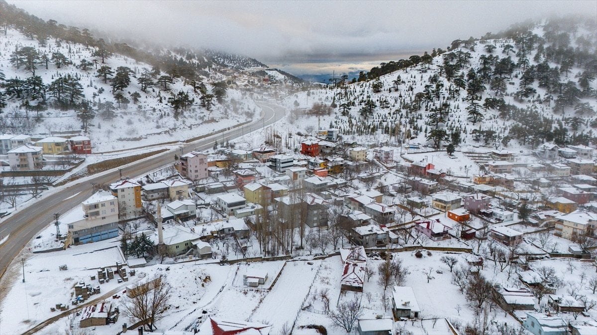 Mersin’in Mut ilçesinde etkili olan kar yağışı sonrası Sertavul Yaylası tamamen beyaz örtüyle kaplanırken, ortaya çıkan kış manzarası dronla kayda alındı.