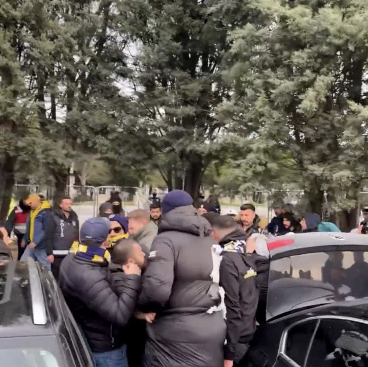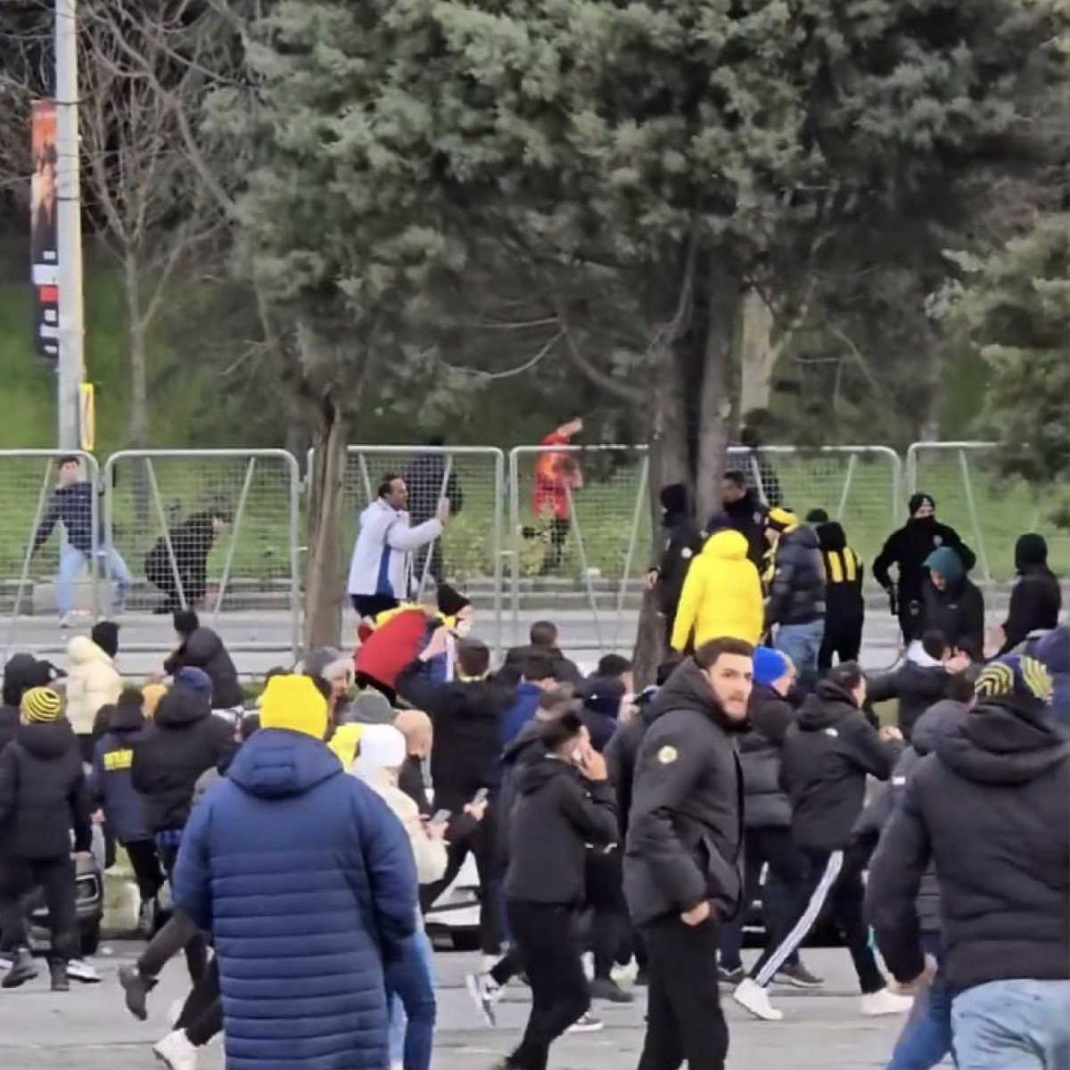 Sosyal medyaya yansıyan görüntülerde Fenerbahçeli ve Galatasaraylı taraftar arasında kavga çıktığı görüldü.